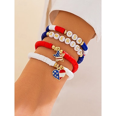 Conjunto de Pulseras de Perlas Acrílicas para Mujeres del 250 Aniversario de los Estados Unidos Múltiples Estilos Tema de Libertad de EE.UU. Perfecto para Uso Casual