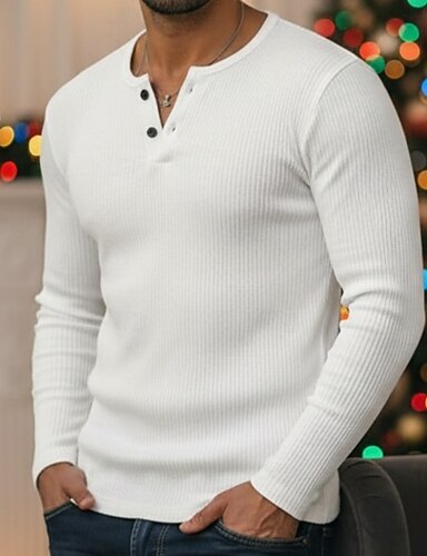 Hombre Camiseta Camiseta de punto acanalado Camiseta superior Camisa de manga larga Manga Larga Henley Primavera Otoño Invierno Plano Tira de pozo Moda Design Básico Tejido en Punto Vacaciones Calle