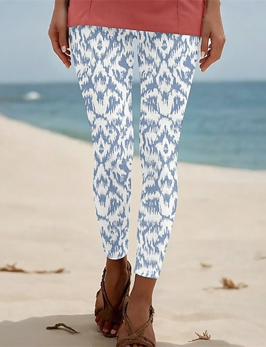 Mujer Pantalones Polainas Estilo Étnico Casual Longitud total Alta cintura Geométrico Cintura elástica Estampado Transpirabilidad Cómodo Elástico Vacaciones Calle Ropa Cotidiana Azul Verano Primavera