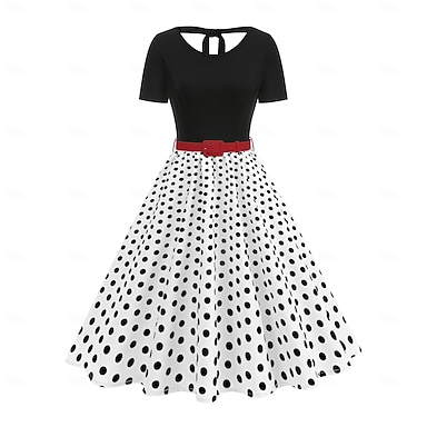 Elegante Clásico 1950s Mediodía Vestido de una línea Vestido swing Vestido acampanado Mangas cortas Lunares Corte A Disfraz Mujer Carnaval día de San Valentín Mascarada Vacaciones Uso Diario