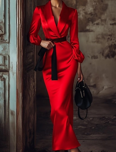 Mujer vestido largo vestido largo Vestido de raso Vestido de fiesta de graduación Vestido de Fiesta Elegante Moda Moderno Fiesta de Noche Fiesta Ocasión especial Ajuste regular Plano Manga Larga