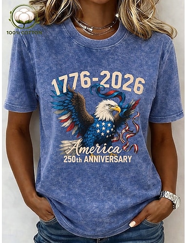 Mujer 100% Algodón Lavado ácido Lavado vintage Elegante Clásico Manga Corta Cuello Barco Tops regulares Casual Azul Piscina Negro Rosa Morado Verde Trébol Verano Primavera