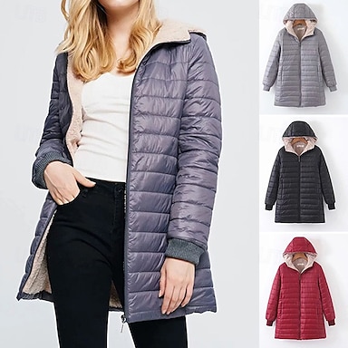 Mujer Abajo Chaqueta acolchada Abrigo Aislado Mantiene abrigado Cremallera Activo Diario Exterior Cómodo Color sólido Exterior Ropa Cotidiana Casual Diario Con Capucha Ajuste regular Manga Larga Ropa