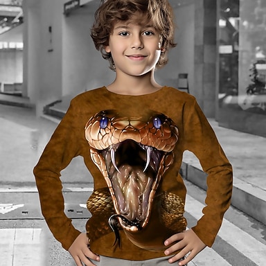 Chico 3D Animal Camiseta Manga Larga Impresión 3D Otoño Invierno Deportes Moda Ropa de calle Niños 3-12 años Exterior Casual Diario Ajuste regular
