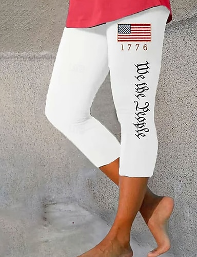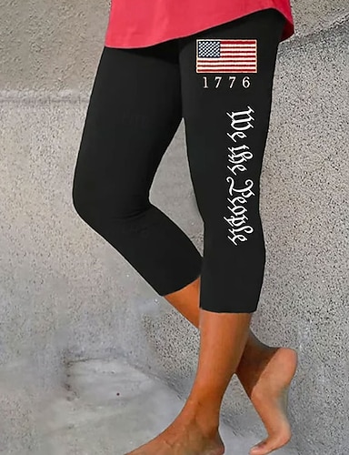 Pantalones Capri Patrióticos de Día de la Independencia de Mujeres Mallas Vacaciones Moda Vintage Largo a la Pantorrilla Pantalones de Cintura Alta Impresión Gradiente de Estrella Transpirable Suave