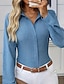Mujer Camisa Camisa para Vestido Abotonar la camisa Blusa Frunce Sayo Botones Color sólido Plano Elegante Moda Diario Manga Larga Cuello Vuelto Tops regulares Ropa de calle Oficina Trabajo Azul