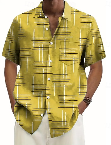 Hombre Geométrico Bloque de color Retazos Camisa Camisa de verano Abotonar la camisa Manga Corta Moda informal Vacaciones Festivos Ropa de calle Verano Cuello Vuelto Impresión 3D Un bolsillo