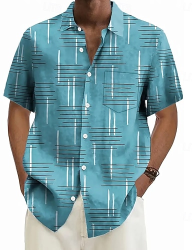 Hombre Geométrico A Rayas Camisa Camisa de bolos Camisa de campamento Manga Corta Moda informal Ropa de calle Vacaciones Verano Primavera Collar Cubano Impresión 3D Camisas con botones Azul Piscina
