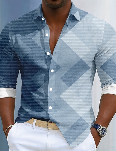 Hombre Geométrico Cuadrícula / Cuadros Camisa Camisa casual Abotonar la camisa Manga Corta Moda informal Vacaciones Uso Diario Verano Primavera Cuello Vuelto Impresión 3D camisas con cuello Azul