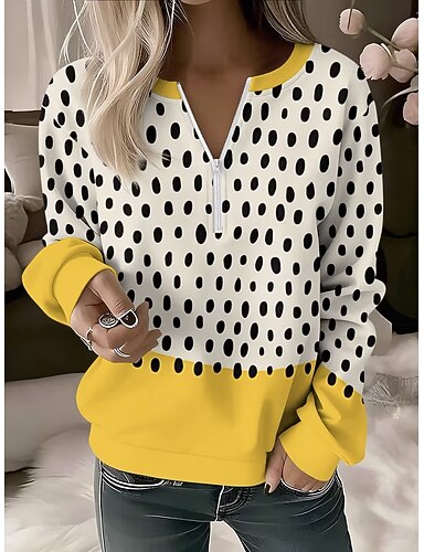 Mujer Sudadera Sudaderas con cremallera Cremallera Estampado Graphic Geométrico A Lunares Moda Casual Manga Larga Cuello Barco Tops regulares Calle Uso Diario Amarillo Otoño Invierno