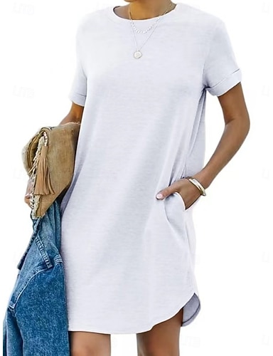 Mujer Vestido hasta la Rodilla Vestido blanco Vestido informal Elegante Moda Moderno Exterior Vacaciones Noche Ajuste regular Plano Manga Corta Cuello Barco Azul Piscina Negro Blanco Rojo Verano