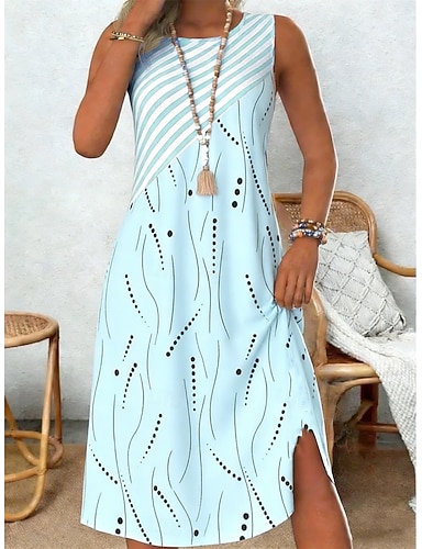 Mujer Vestido Midi Vestido informal Vestido de verano Vestido de cambio Elegante Moda Clásico Diario Exterior Vacaciones Ajuste regular Geométrico A Rayas Sin Mangas Cuello Barco Azul Piscina Verano