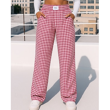 Mujer Normal Corte Recto Moda Longitud total Cintura Media Bloque de color Correa Cómodo Microelástico Ropa Cotidiana Verde hierba primavera Todas las Temporadas Holgado