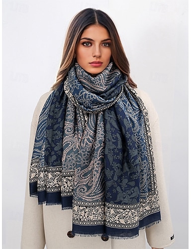 Bufanda de gran tamaño con estampado paisley vintage para mujer: chal suave y cálido para el invierno, ropa informal y formal