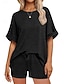 Mujer Conjuntos de dos piezas Conjuntos de pantalones cortos Manga Corta Escote Redondo Plano Moda Ropa de calle Casual Diario Exterior Negro Marrón Verano Ajuste regular