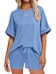 Mujer Conjuntos de pantalones cortos Manga Corta Escote Redondo Plano Moda Ropa de calle Casual Diario Exterior Negro Rosa Azul Marino Verano Ajuste regular