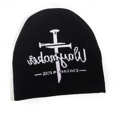Hombre Unisexo Sombrero de Beanie Sombreros de invierno Gorros Sombrero tejido Gorro de invierno Negro Rojo Poliéster De Punto Acogedor Víspera de Todos los Santos Ropa Cotidiana Letra Cruz Templado