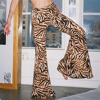 Retro Antiguo Boho Años 70 Pantalones acampanados leggings acampanados Disco Alta cintura Animal Leopardo Tigre Disfraz Mujer Víspera de Todos los Santos Carnaval Vacaciones Festival de Música