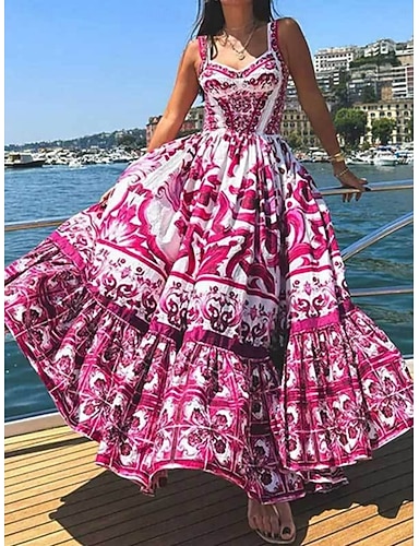 Mujer Vestido maxi vestido de playa Vestido informal Vestido de flores Elegante Moda Moderno Exterior Vacaciones Noche Ajuste regular Floral Sin Mangas Correas Escote en Pico Morado Rosa Rojo Verano