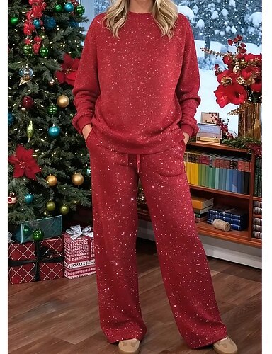 Mujer Conjuntos de dos piezas Manga Larga Escote Redondo Color sólido Elegante Cálido Vintage Casual Diario Exterior Azul Piscina Negro Rojo Primavera Holgado