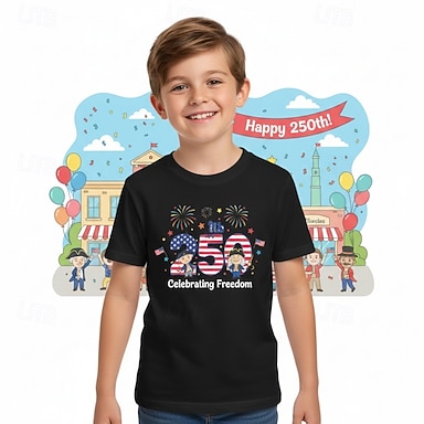Algodón 100% Algodón Niños Chico Azul Piscina Negro Blanco Graphic 250 aniversario Camiseta Blusa Cuello Barco Manga Corta Exterior Uso Diario Moda Ropa de calle Design Estampado Verano Primavera