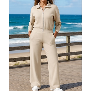 Mujer Pantalones de pierna ancha Chándal de estar en casa con bolsillo Color sólido Trajes de Yoga Otoño invierno Rojo Azul Gimnasio Al Aire Libre Corriendo Moda Manga Larga Deporte Ropa de Deporte