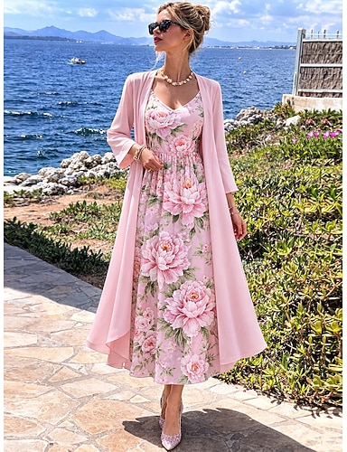 Vestido de encaje de línea A columna de largo de té vestido de fiesta vestido de madre de la novia con manga 3/4 cuello en V cuello redondo elegante vintage fiesta de encaje con pedrería de encaje
