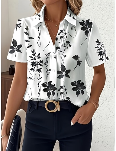 Camisa de mujer de manga corta gráfico floral vintage tropical elegante sin mangas con cuello regular tops diarios azul blanco amarillo rosa rojo verano primavera