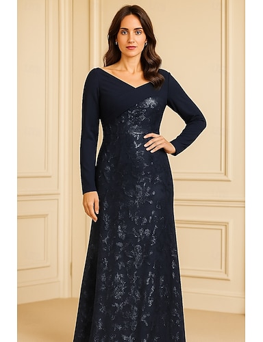 Vestido de la madre de la novia Vestido de sirena trompeta Invitada de boda Elegante Escote en V Largo Encaje Sin mangas con encaje