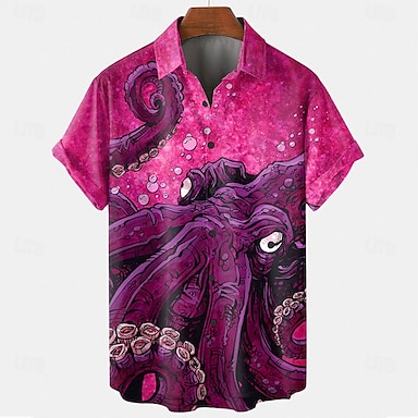 Hombre Pulpo Criaturas del mar Traje de Halloween Camisa Abotonar la camisa Camisa de diseñador Manga Corta Hawaiano Festivos Ropa de calle Verano Primavera Cuello Vuelto Impresión 3D camisas con