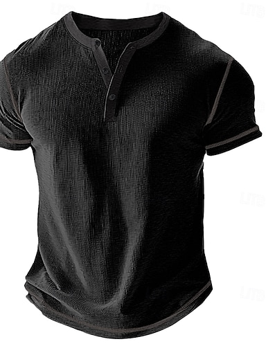 Hombre Camisa henley gofrada Tee Manga Corta Color sólido Plano Moda Design Casual Bloque de Color Botones Henley Exterior Casual Diario Verano Primavera Todas las Temporadas Azul Piscina Marrón