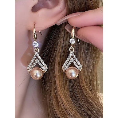 Pendientes colgantes de perlas artificiales para mujer, elegante diseño geométrico con detalles de cristal, estilo nupcial clásico, para novias, ceremonias de boda y eventos formales de noche.