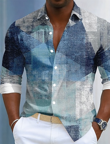 Hombre Geométrico Mármol Arte líquido abstracto Camisa Abotonar la camisa Camisa de vestir informal Manga Larga Moda informal Exterior Uso Diario Primavera Otoño Cuello Vuelto Impresión 3D camisas