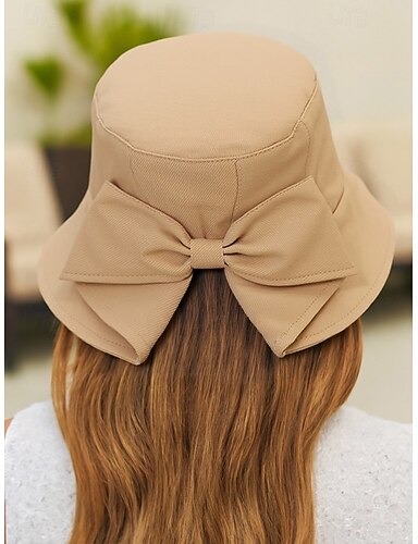 Sombrero de pescador con lazo para mujer: sombrero ligero de poliéster de ala ancha para el sol, ideal para viajes al aire libre, playa y uso informal de verano.