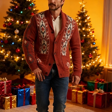 Hombre Suéteres de Navidad suéter navideño Chaqueta de Punto Suéter recortado Jersey con cremallera Estriado Tejer Tops regulares Bolsillo Botones Patrones de Rombo Redonda Moda Clásico Vacaciones