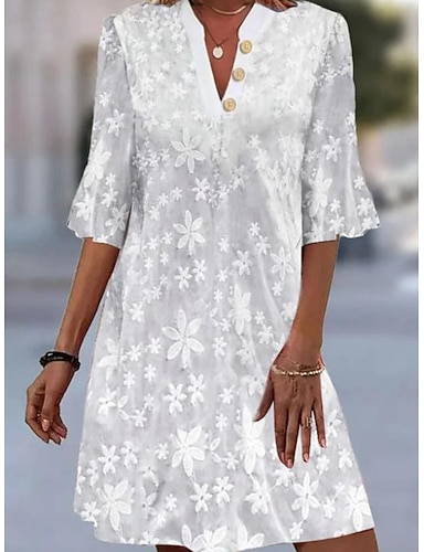 Mujer Mini vestido Vestido de encaje Vestido blanco Elegante Moda Exterior Vacaciones Noche Ajuste regular Floral Media Manga Escote en Pico Blanco Verano Primavera