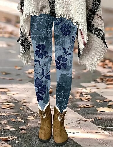 Mujer Polainas Leggings cómodos Vacaciones Casual Longitud total Alta cintura Cachemir Estampado Mantiene abrigado Cómodo Elástico Casual Diario Vacaciones Azul Oscuro Otoño Invierno Ajustado