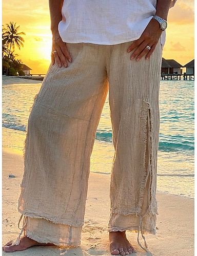 Mujer Lino de algodón sintético Perneras anchas Pantalones Pantalones casuales Vacaciones Moda Ropa de calle Longitud total Alta cintura Plano Cintura elástica Cómodo Rígido Diario Festivos Noche