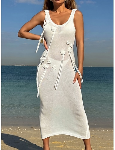 Mujer Bañadores Tapadera Vestido de Baño Traje de baño Vacaciones Ropa de playa Color sólido Escote en U Sin Mangas Trajes de baño