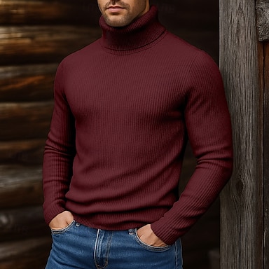 Hombre Abrigo de cuello alto Suéter de punto Suéter recortado Estriado Tejer Tops regulares Punto Plano Cuello Alto Contemporáneo moderno Casual Casual Trabajo Ropa Otoño Invierno Vino Negro S M L