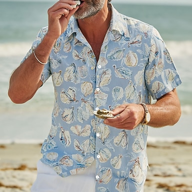 Hombre Concha Criaturas del mar camisa hawaiana Camisas tropicales Manga Corta Hawaiano Vacaciones Ropa de playa Verano Primavera Cuello Vuelto Impresión 3D Camisas con botones Azul Piscina Rosa