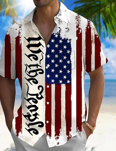 Día de la Independencia Hombre 4 de julio, 250 aniversario de Estados Unidos Bandera de EE. UU. Patriótico Camisa Camisa de verano Abotonar la camisa Manga Corta Moda informal Exterior Festivos