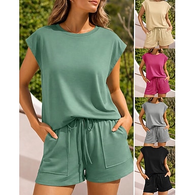 Mujer Tracksuit Sudadera tipo jersey Pantalones cortos deportivos Correa 2 Piezas Bloque de color Conjunto de ropa deportiva Verano Primavera Negro Verde Entrenamiento de gimnasio Correr Corriendo