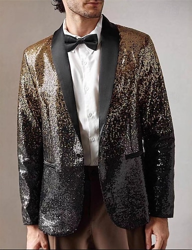 Hombre chaqueta Negocio Fiesta de Cóctel Fiesta de Boda Moda Casual Primavera Otoño Poliéster Degradado Lentejuelas Bolsillo Cómodo Botonadura Simple Chaqueta de sport Dorado