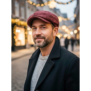 Gorra de vendedor de periódicos con diseño de espiga navideña para hombre, gorra plana vintage de mezcla de lana con diseño clásico de 8 paneles, gorra multicolor estilo Gatsby para invierno, vacaciones y uso informal.