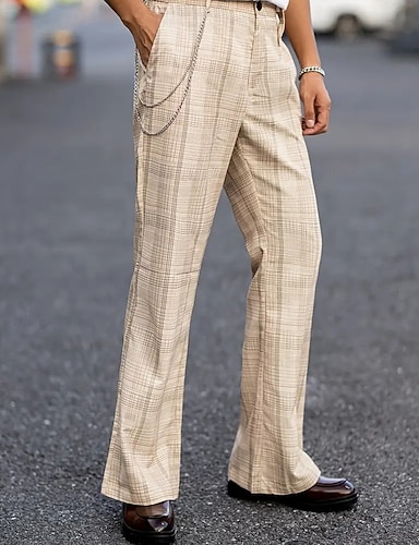 Hombre pantalones de traje Pantalones Chinos Bolsillo Botones Plaid Comodidad Formal Fiesta Trabajo Moda Estilo clásico Caqui Microelástico