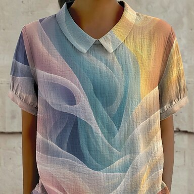 Mujer Blusa Botones Estampado Graphic Geométrico Vacaciones Diario Casual Manga Corta Cuello Camisero Tops regulares Diario Festivos Noche Azul Piscina Naranja Gris Verano Primavera