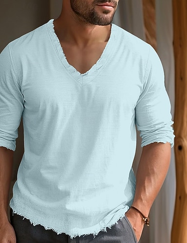 Hombre Camiseta de lino y algodón Camiseta superior Mangas cortas Escote en Pico Verano Plano Moda Design Básico Suave Casual Vacaciones Calle Bleu Ciel Negro Blanco Camiseta superior para hombre