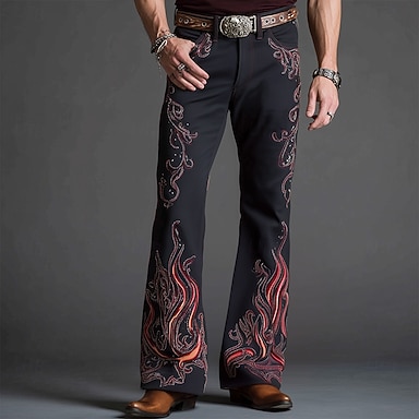 Hombre Estampado Floral Flores Pantalones de discoteca Pantalones de campana de los años 60 y 70 Media cintura occidental retro de la vendimia Exterior Vacaciones Casual Bolsillos laterales