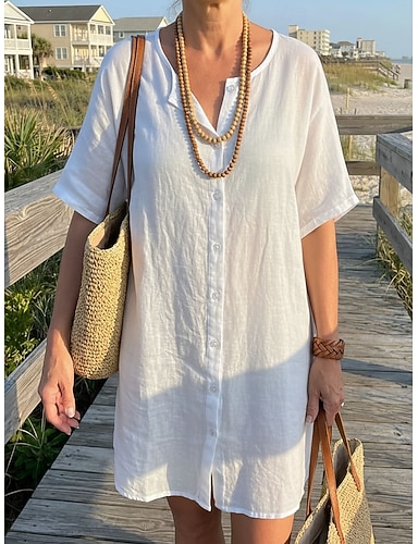 Mujer Vestido Midi Vestidos de lino y algodón 100% Algodón Vestido de cambio Moda Moderno Exterior Vacaciones Noche Holgado Plano Media Manga Escote en Pico Amarillo neon Blanco Rosa Verde Trébol